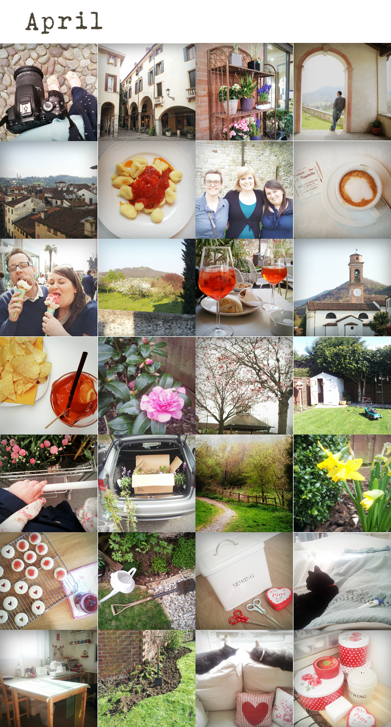 April... with a lovely short trip to Italy, with a very filled schedule to meet all our dear ones, and with our hills and our hometowns to visit like tourists, with dinners and afternoons with our friends chatting and laughing, with an amazing ice cream to enjoy walking along the lake, with the best food in the whole world and countless aperitifs like they are meant to be, with our garden completely awake when we got back, and the first lawn mowing of the year, with flower beds to design, too many purchases at the garden centre and a lot of work with the spade and the compost.